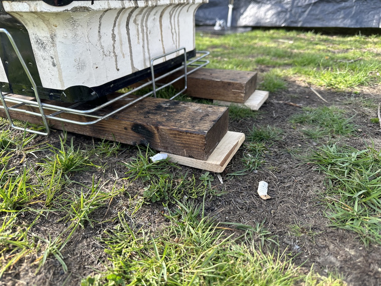 七輪や焚火台などは厚さの違う木屑を挟めて水平を保っている。特にストーブは転倒の恐れがあるので、移動させるたびに水平をとり安全に努めている。