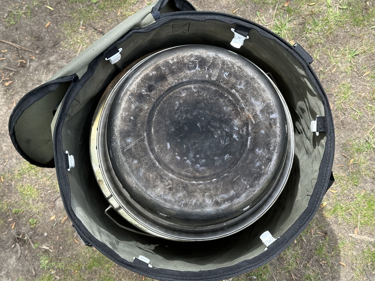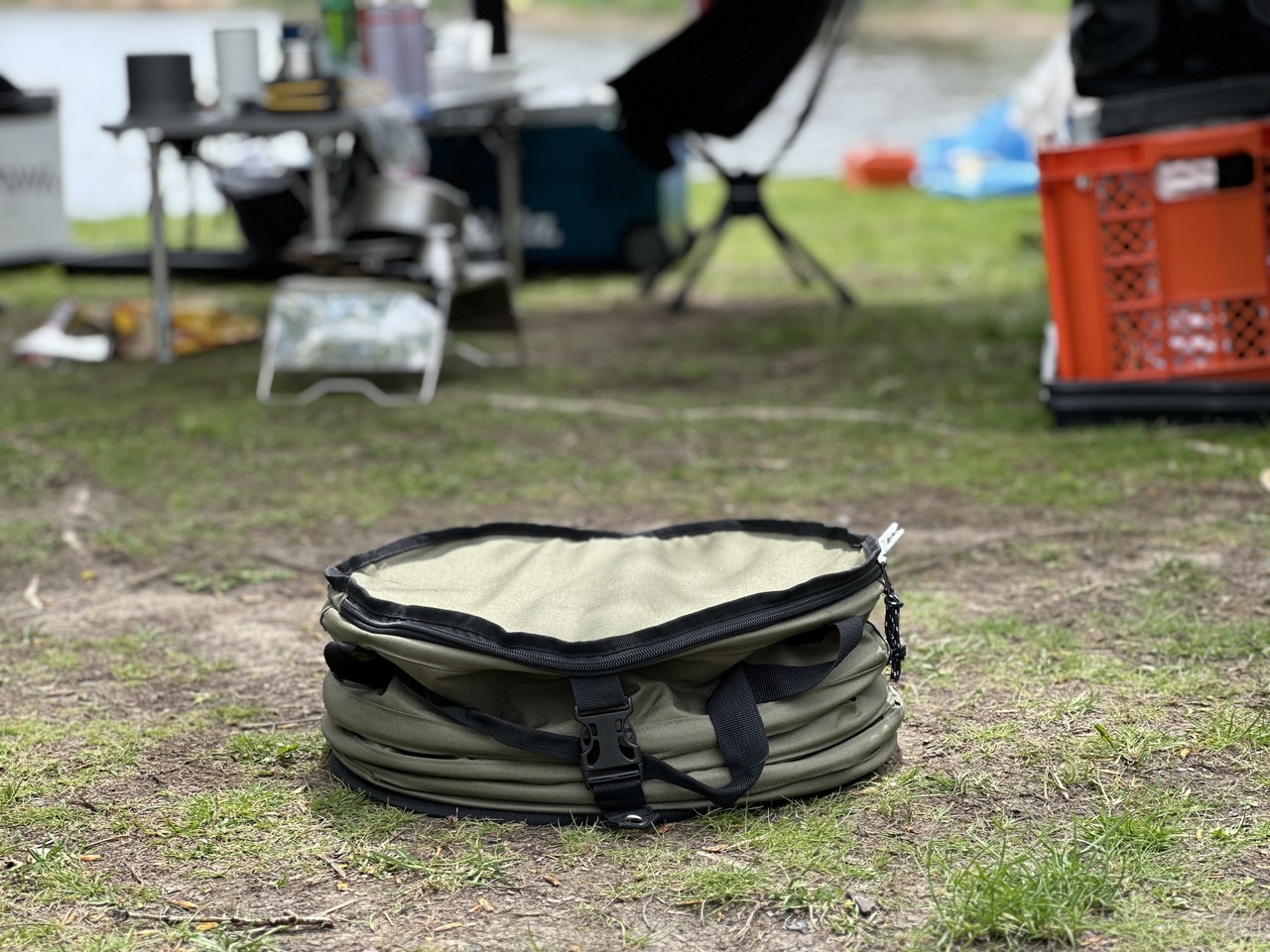 フジカハイペットのストーブ収納に使用している。一緒にタライも入れられるため持ち運びに便利である。