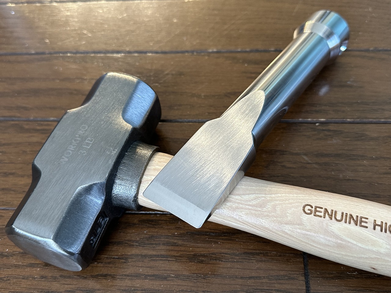 今まではお決まりのナイフを使い、バトリングして薪を割っていたが効率が悪く、それにしか使わないナイフがすぐに痛んで切れなくなり途方に暮れていた。仕事で使っていたクサビを使ってみたが、刃先が薄くあまり手応えがない。