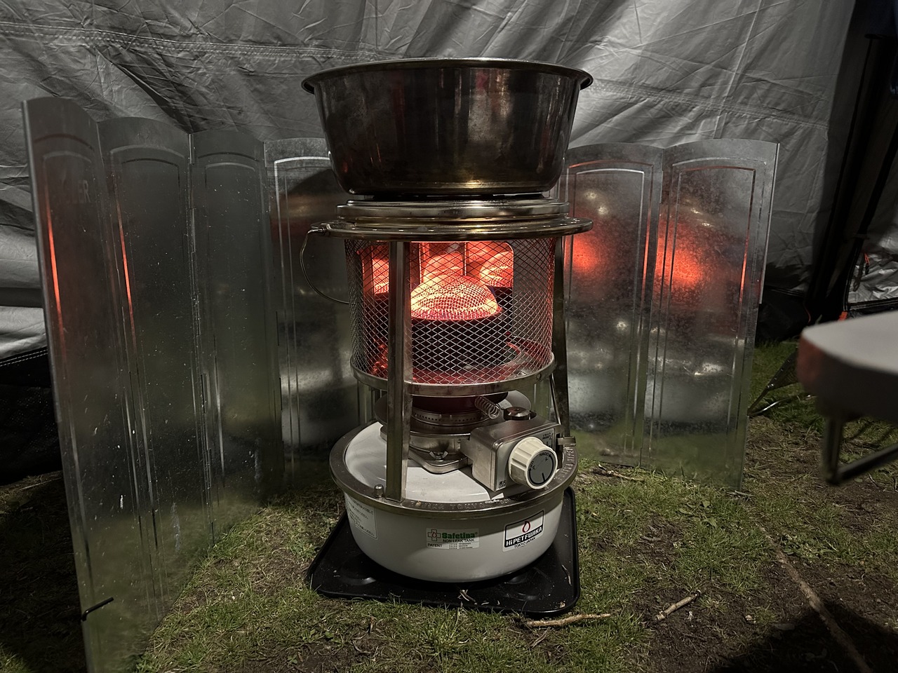 灯油ストーブは、夏以外のキャンプではマストアイテムてある。