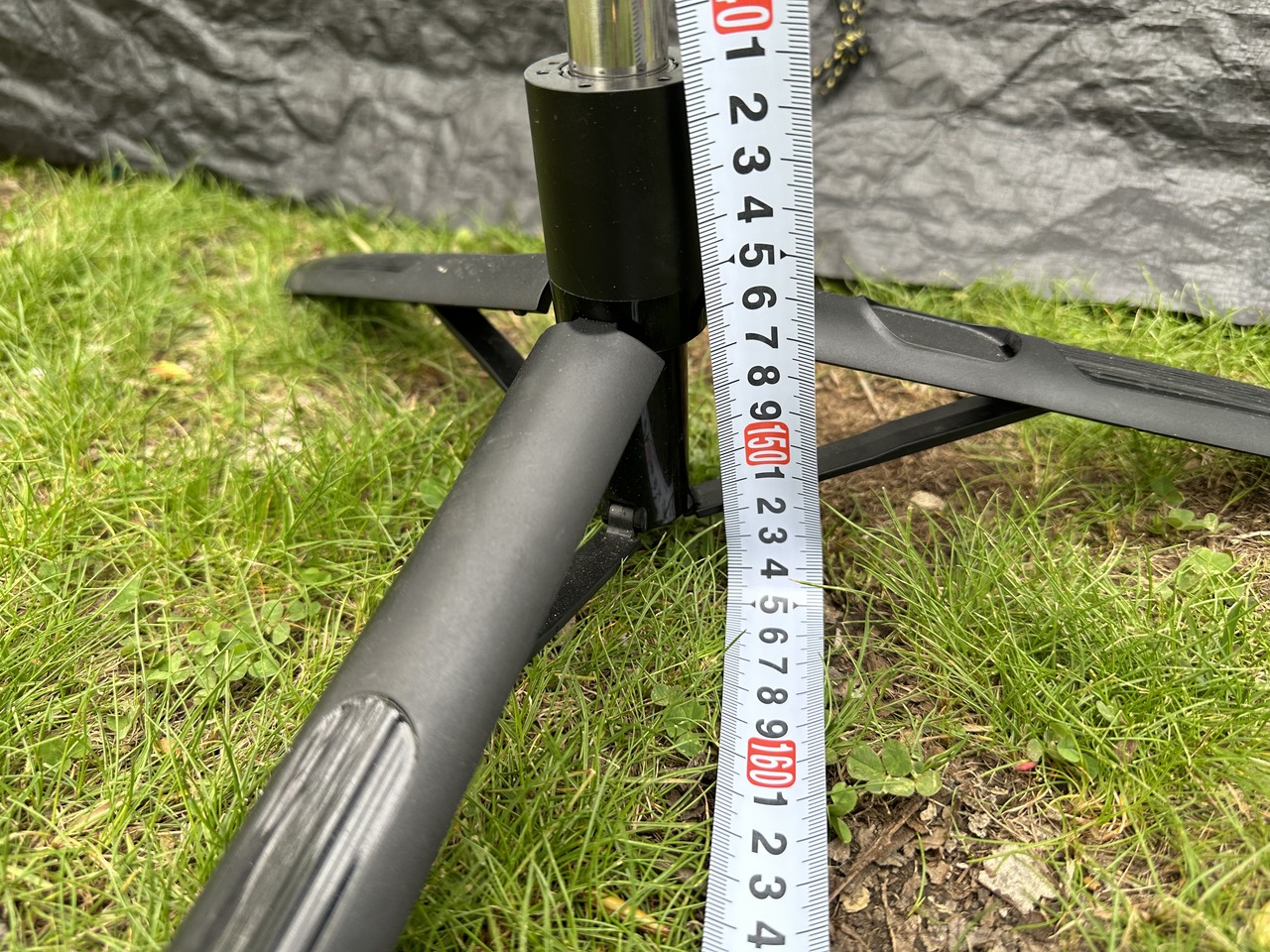 大きさは、収納時は30cm程度で、最大で150cm、脚を一辺は25cm程度あるため、全体で50cm以上広がる。これで、記憶に残る写真をたくさん撮れるはず。