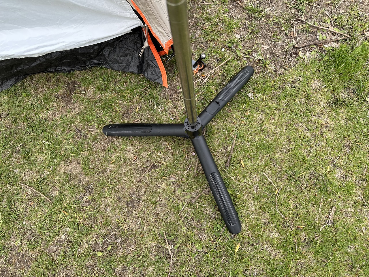 キャンプの記憶を写真に収めることは多いと思う。今ではスマホでほとんどの撮影が出来るのだが、人を入れて撮ったり、集合写真を撮ったりするときに自撮り棒が必要となる。この自撮り棒は三脚付きで、脚が大きく広がるので、安定していない地面や強風でも倒れる心配がない。また、付属のリモコンがあるため、Bluetoothでスマホと接続して撮影が可能だ。