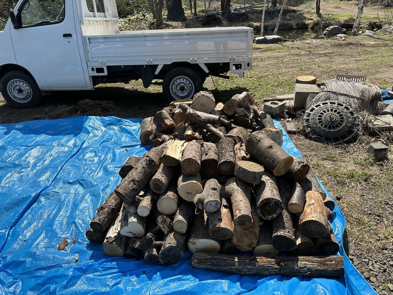 最初は一生分の薪が手に入るルートが嬉しかったが、すべてがキレイな木材ではなく、木の根やいびつなカタチのモノはナタでもオノでも切れないのでチェーンソーでチマチマ細かくするのだが、疲れてしまった。