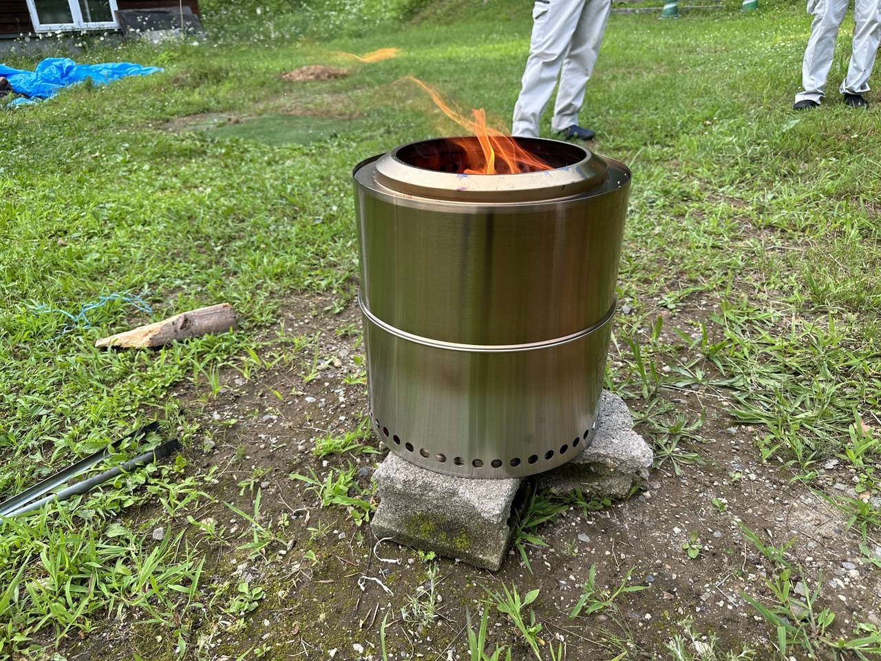 勢いよく燃え出したら本当に出ない。サイズは「約Φ36×H40cm」あるので、ほとんどの薪はそのまま入る。