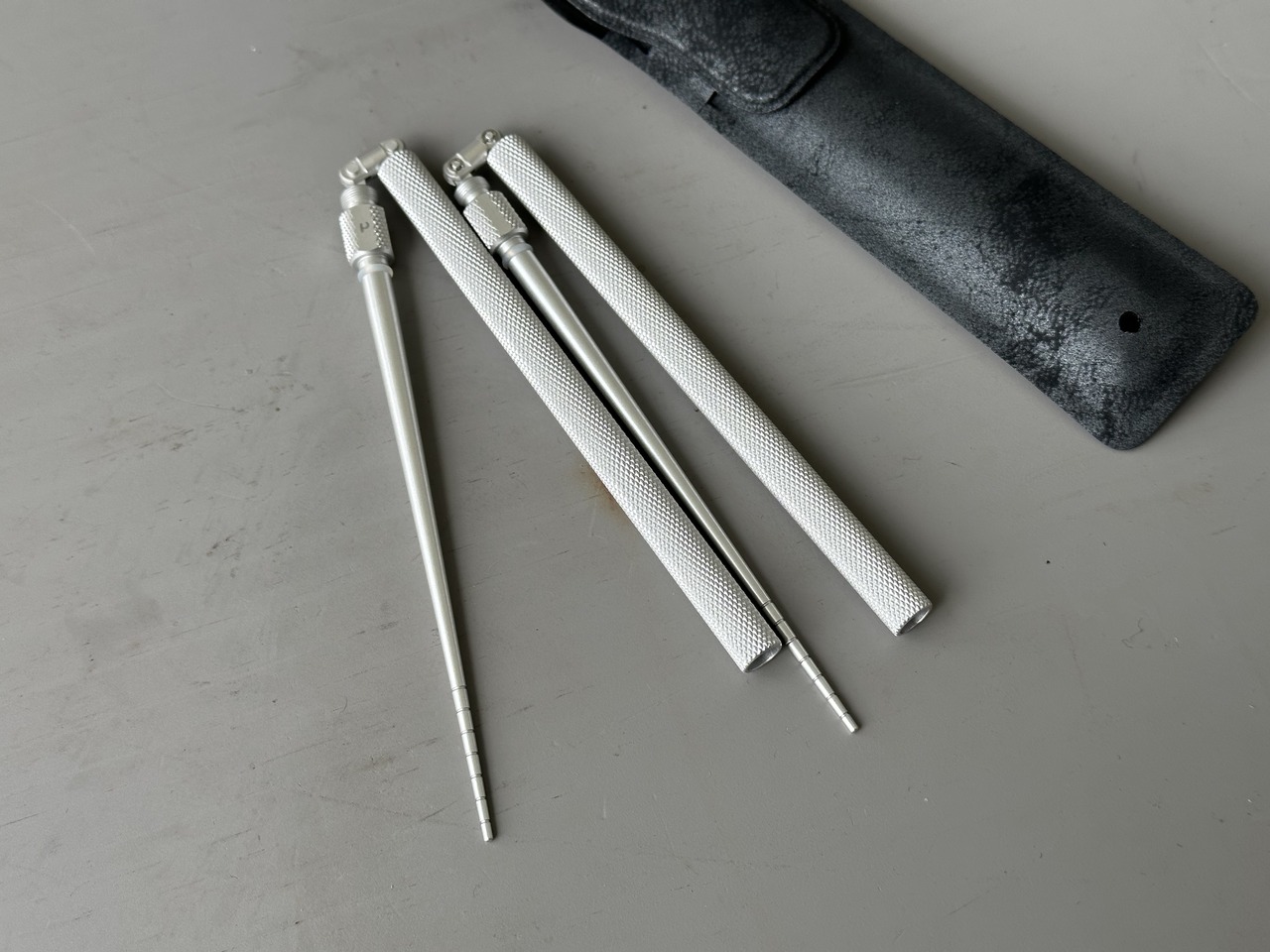 最終的には100均の折りたたみ式が収納にちょうどよかったのだが、100均ということもあり、有難みがないことが残念に思っていた。表記の折りたたみ箸は、見た瞬間「買おう」と思えるデザインの箸で、実際に使ってみると細みの箸先は、予想以上に使い勝手が良く、洗浄してもアルミのため錆が出る心配もない。